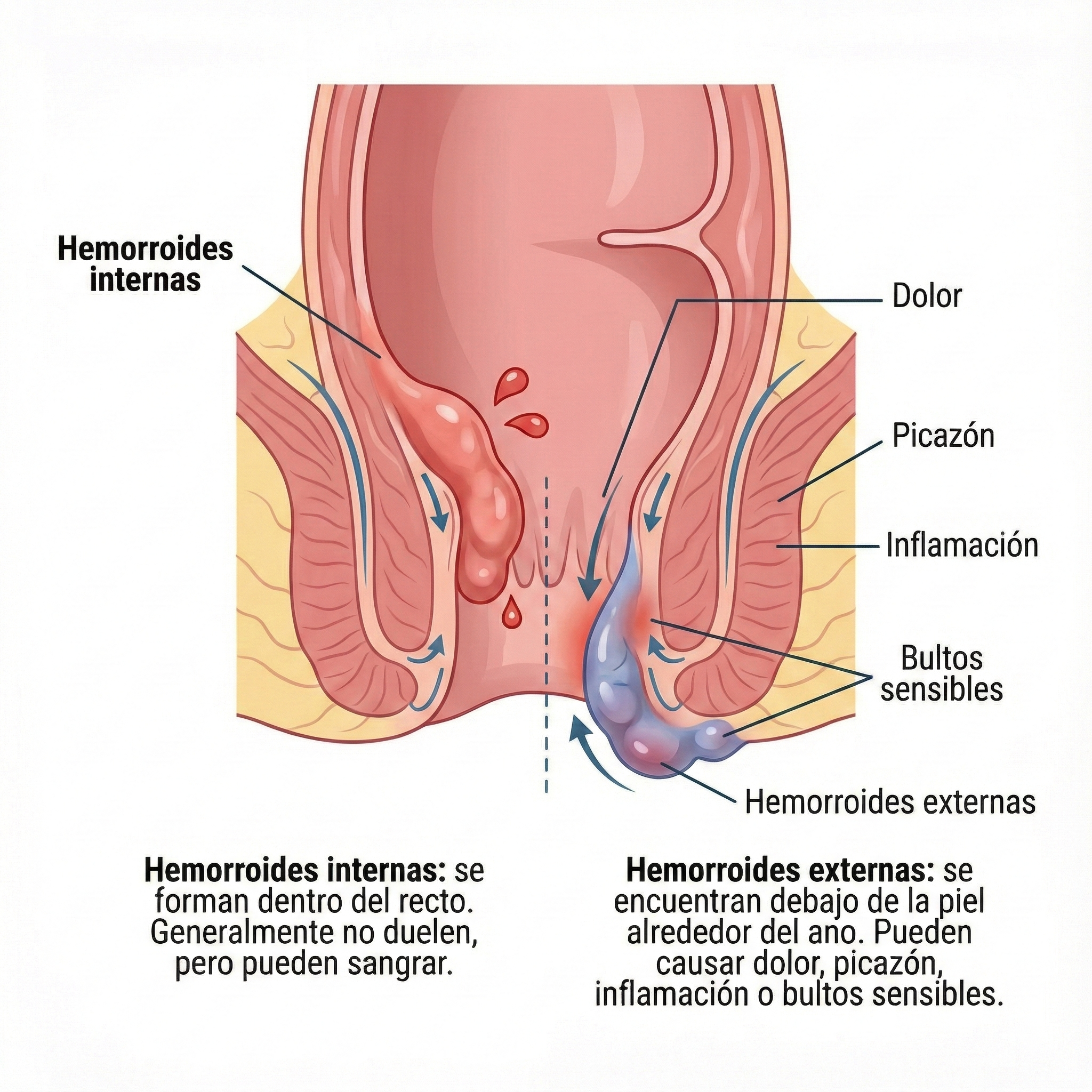 Dato importante: Las hemorroides no son peligrosas, pero pueden ser muy molestas. En la mayoría de los casos mejoran con medidas simples.